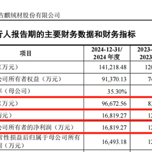 古麒绒材管理层预计,公司2025年上半年的营业收入为5.2亿元至5.8亿元,同比变动率为1.71%至13.44%;归母净利润为9800万元至1.07亿元,同比变动率为1.42%至10.73%。
