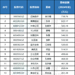 2024年A股上市公司董秘年度薪酬前一百名排名
