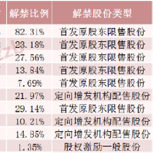下周解禁比例前十股票