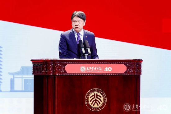 今天,北京大学光华管理学院迎来了它四十岁的生日。我们相聚在百周年纪念讲堂,纪念这个特别的日子,一起庆祝属于我们的集体生日。请将这份祝福化作掌声,送给学院,送给自己,送给每一位海内外光华人。
