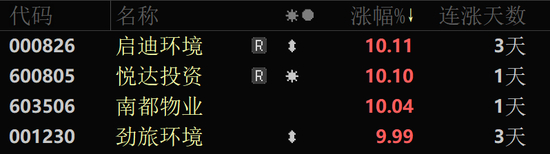 环保设备、垃圾分类、核污染防治、汽车拆解等细分板块也纷纷逆势上扬,劲旅环境、新安洁、悦达投资等涨停或涨超10%。