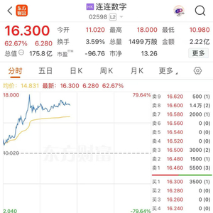 今日早盘,连连数字开盘近一小时后,股价狂飙近80%。截至午盘,连连数字涨62.67%,报16.3港元/股,成交额超2亿港元。不到三个交易日,连连数字股价已累计上涨超120%。