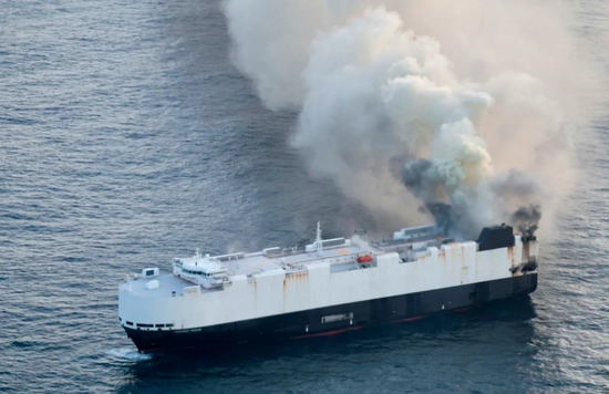 这起事故,也让人联想起2022年一艘载有约4000辆汽车的货船在大西洋失火并最终沉没的事件。两起事故发生在短短五年内,凸显新能源车海运面临的新风险。