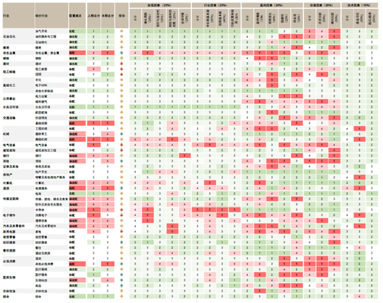 图表:中金A股行业配置未来3-6个月观点及细分小项