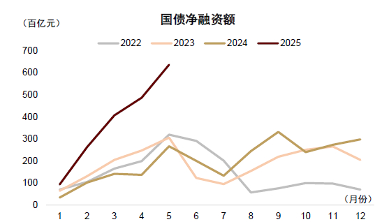 图表:1-5月国债净融资约6.4万亿元