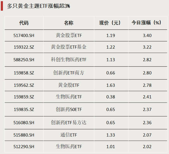 多只黄金主题ETF涨超3%