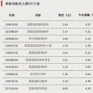 A股方面,黄金股板块震荡走强,国泰基金、平安基金等多家公募旗下的黄金股主题ETF涨幅超3%。此外,医药、通信等主题的ETF亦有明显涨幅。业内人士表示,黄金股在当前市场环境中估值相对偏低,具有投资价值。此外,黄金股具有高分红的特征,也吸引越来越多资金进入。