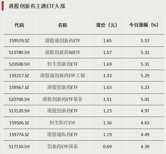 6月12日,港股市场整体震荡。港股创新药板块走出亮眼行情,多只相关主题ETF涨超5%。成分股方面,荣昌生物涨超20%、中国生物制药涨超19%。