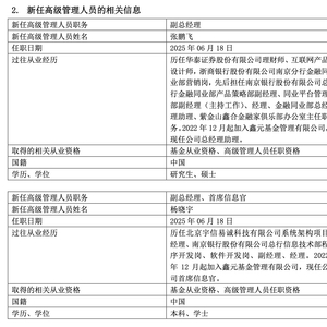 新任副总经理兼首席信息官杨晓宇则为技术背景出身。曾任北京宇信易诚科技系统架构项目经理,南京银行总行信息技术部程序开发至经理职务,于2022年12月加入鑫元基金担任首席信息官。此次掌舵信息技术与管理双重职责,推动数字化转型将成为其关键战场。