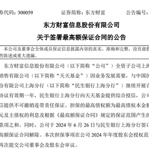 在此之前的2024年6月,东方财富曾为天天基金网提供30亿担保。时隔一年,担保金额净增10亿。