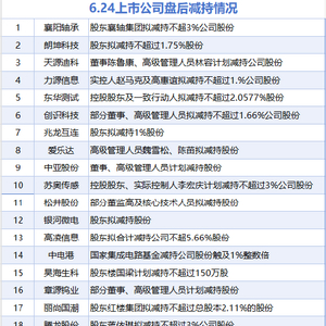 6月24日增减持汇总:暂无增持 襄阳轴承等20股减持(表)