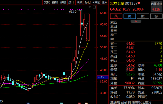 北方长龙、万里马、国瑞科技、天晟新材等多股20%涨停,光电股份、中兵红箭、中天火箭、北方导航等也批量封板。