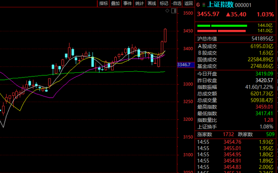 今日,A股继续强势上攻,创业板指涨逾3%,创近3个月来新高,上证指数则创年内新高,深证成指、北证50、科创50等均涨超1%。近4000只个股上涨,成交量温和放大至1.64万亿元,创2个半月来新高。