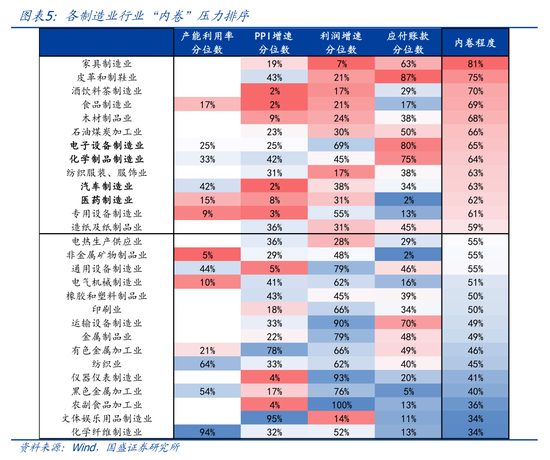 综合四大维度看,除了汽车,电子设备、化学制品、医药等行业的“内卷”压力也较大。