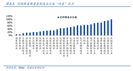 (2)PPI角度:增速分位数最低的是食品饮料、汽车、专用设备、仪器仪表、通用设备、医药等行业,可能与近年来医药集采、汽车行业价格战、竞争加大等有关。