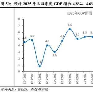 >>中国经济:增长动能放缓,预计下半年GDP增长4.7%左右,全年GDP约增长5%。预计上半年GDP增速在5.3%左右,政策短期加力必要性下降,主要是落实好存量政策;但外部贸易、政策、地缘政治等不确定性增多,内部仍面临有效需求不足、地产下行、低通胀等问题,政策仍需保持“相机加力”的灵活特征,预计三四季度GDP分别增长4.8%、4.6%,下半年GDP增长4.7%左右,全年约增长5.0%。一是消费受以旧换新政策效用减弱、就业承压和居民行为趋于谨慎等因素拖累,预计下半年社零增速放缓至4%左右,全年约增长4-5%。二是投资增速有望保持稳定。其中,房地产投资仍将受到高库存、购房负担压力偏大、部分房企信用风险持续等约束,全年降幅仍在-10%左右;制造业投资面临出口回落、地产低迷和产能过剩多重制约,全年增速或缓降至7%左右;基建投资资金端有准财政和银行配套信贷支撑,中性情景下全年约增长9%,不排除回升至10%以上的可能。三是出口受到关税冲击与价格低迷的拖累,但我国贸易伙伴多元化和贸易结构优化,能缓冲部分影响;预计下半年出口增速或有所下滑,全年出口增速约为0%。