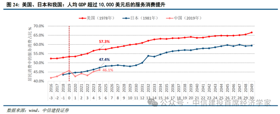 当前我国居民消费从“物质”向“情绪”、从“需要”向“想要”的升级,是与我国经济发展、产业现代化、城市化和居民生活水平提升的趋势一致的。美国和日本等发达国家的经验显示,当国民人均GDP跨越10,000美元关口后,随着国民经济的继续发展,居民消费将逐步从基础生活物品领域向情感、个性、悦己等更丰富的服务领域拓展——这在美国主要表现为娱乐、体育、医疗、保健、交通和金融等领域的服务消费,在日本主要表现为兴趣、动漫、休闲、养老等领域的服务消费。