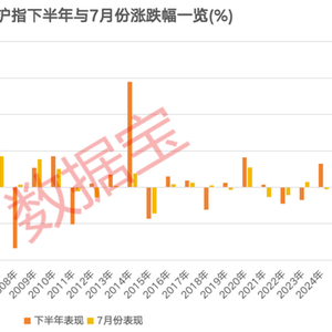 今年上半年,上证指数涨2.76%,6月份涨幅为2.9%,7月能否“七翻身”,今年下半年A股怎么走?从过去25年(2000年至2024年)数据来看,沪指7月份平均涨幅为0.74%,上涨概率达到52%。沪指下半年平均涨幅为3.76%,上涨概率达到64%,较上半年的上涨概率53.85%高出10个百分点左右。
