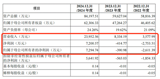 招股书显示,2022-2024年,上海超导实现营业收入分别为3577.99万元、8334.19万元、2.4亿元;对应实现归母净利润分别约为-2611.39万元、-390.98万元、7294.74万元。