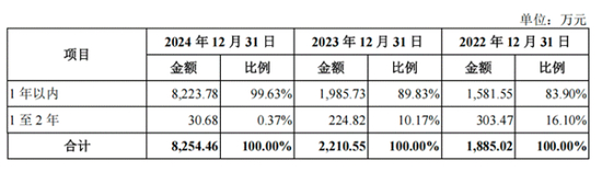 招股书数据显示,上海超导的应收账款规模在2024年末出现显著增长。截至2024年12月31日,公司应收账款余额达到8254.46万元,较2023年末的2210.55万元增加6043.91万元,增幅高达273.41%。这一增长幅度远超同期营业收入187.4%的增速,反映出公司资金回笼节奏与业务扩张速度出现一定程度的不匹配。