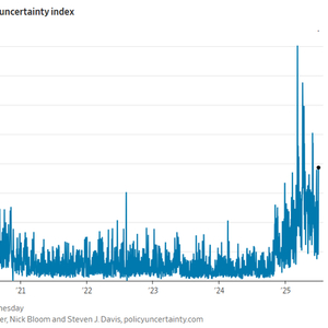 当然市场也可能是错的。根据西北大学的学者Scott Baker和斯坦福大学的Nick Bloom和Steven Davis通过分析报纸文章编制的每日贸易政策不确定性指数,不确定性仍然非常高。该指数在3月和4月飙升,但上周三仍高于特朗普上任前的任何时候。