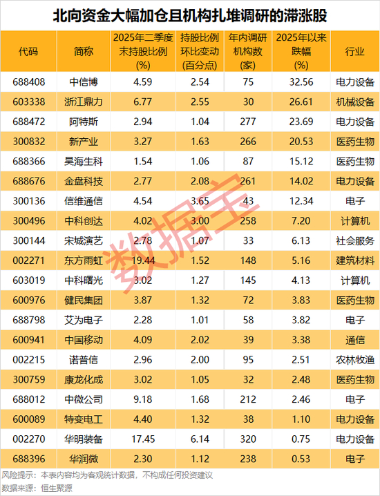进一步来看,上述168只获北向资金环比加仓超1个百分点的陆股通成份股中,截至7月8日,年内获30家及以上机构调研,且今年以来股价下跌的个股有20只。相比沪深300指数年内1.61%的涨幅,这20股属于滞涨的状态。