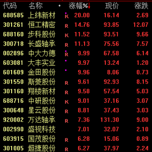 人形机器人概念盘中走势活跃,截至收盘,上纬新材涨停斩获4连板,中大力德连续两日涨停,大丰实业、金田股份亦涨停,斯菱股份涨近10%。