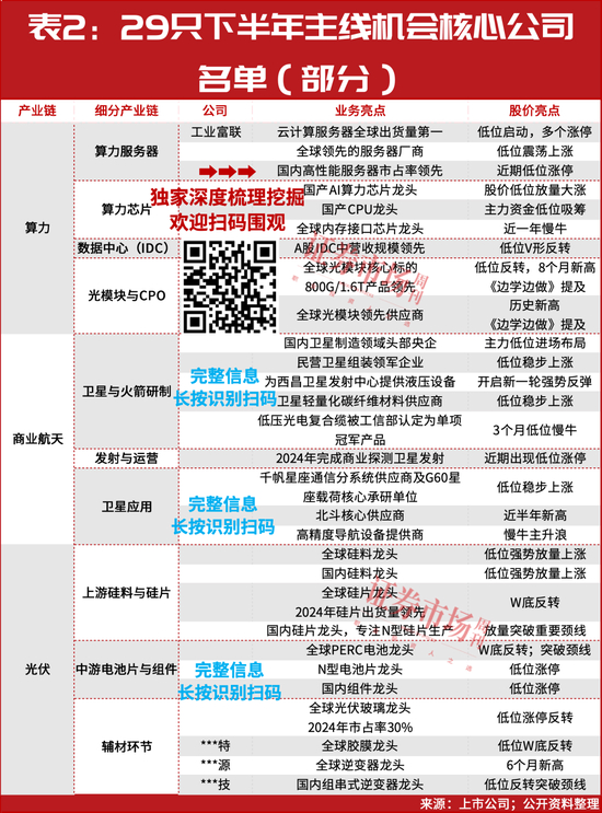 那么,下半年的主要投资主线有哪些?核心公司名单都有谁?对此,笔者“小窗”了大家的老朋友——对市场主线与个股机会有精准研判的边惠宗(本栏目特邀嘉宾),并对核心公司名单进行了重点梳理(可见文内表2),它们中有很多标的都开启了右侧突破启涨模式。
