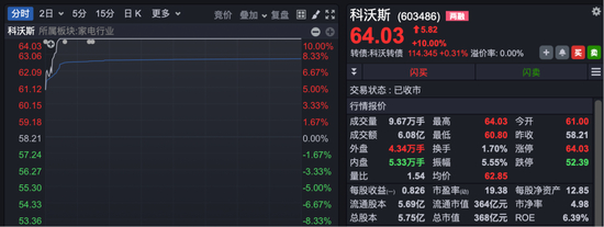 市场热点方面,小家电概念股集体高开高走,板块指数盘中一度放量大涨逾4%,创3个月来新高。科沃斯高开后快速涨停,石头科技、北鼎股份、爱仕达、小熊电器等涨幅居前。