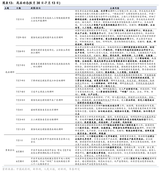 近两周高层继续密集调研地方。边际上看,地方财政相关问题的关注度有所提升。丁薛祥副总理7月7日-9日在黑龙江和吉林调研,重点了解了地方用足用好更激进的财政政策、提高资金使用效益和政策落实效果等方面情况。要求“两重”建设突出战略导向,聚焦“五大安全”;要求完善投入机制,撬动社会资本参与重大项目建设;要求优化财政支出结构,加强绩效管理,兜牢基层“三保”底线。