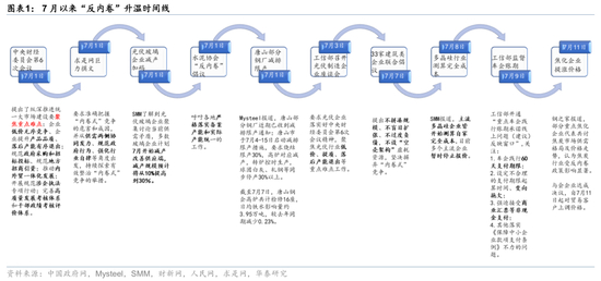 发改委和工信部等重点相关部委对“内卷式”竞争进行了更深入的部署和讨论。工信部7月3日召开了光伏行业制造企业座谈会,14家光伏行业企业及光伏行业协会负责人作交流发言。工信部部长李乐成强调要坚决落实中央财经委第6次会议关于纵深推进全国统一大市场建设的决策部署,要依法依规、综合治理光伏行业低价无序竞争,引导企业提升产品品质,推动落后产能有序退出。发改委7月7日撰文《如何有力破除“内卷式”竞争?》,也明确了“内卷式”竞争的产生来源和治理方向,在企业方面表现为打“价格战”、搞“营销战”、打“任性牌”,在地方上表现为非普惠的招商引资,制造政策洼地;不考虑资源禀赋和产业基础追风口;设置市场壁垒照顾本地企业。
