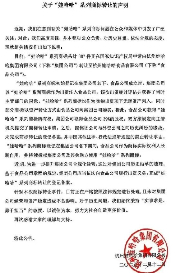 据《经济参考报》(后称《经参》)报道,当时,宗馥莉试图将“娃哈哈”系列共387件商标,从娃哈哈集团转移到其控股的杭州娃哈哈食品有限公司。而杭州国资以大股东的身份,叫停了这项交易。