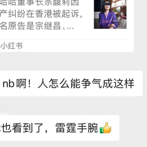 反观宗馥莉呢,大伙的好感达到顶点啊,有手腕有能力,妥妥的爽文大女主啊!