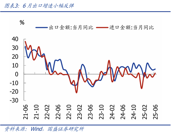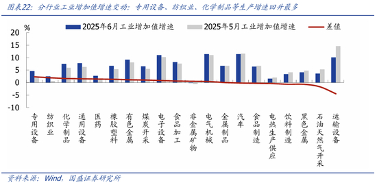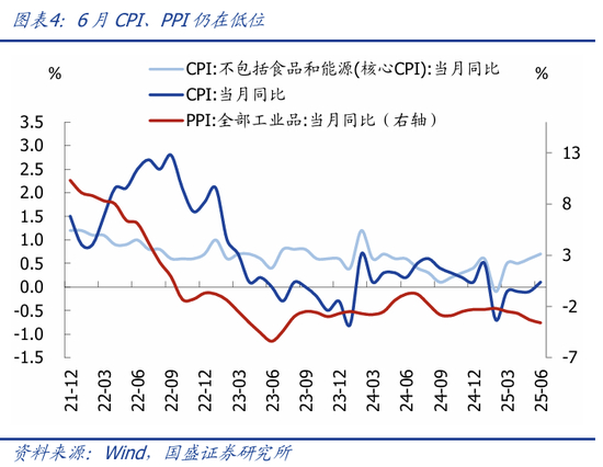 1、整体看,二季度GDP增速和6月单月经济数据,表现为韧性较强、结构分化明显:一方面,出口韧性较强、支撑工业生产维持高位,以旧换新政策对消费的支撑有减退迹象、但效果仍显著;另一方面,地产跌幅扩大,“反内卷”对制造业投资的制约初步显现,基建高位回落,投资端整体低于预期、与PPI跌幅扩大相互印证。