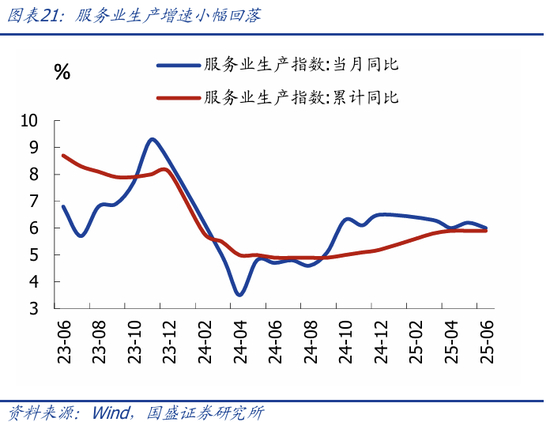 服务业生产增速小幅回落。6月服务业生产指数同比较前值回落0.2个百分点至6.0%。