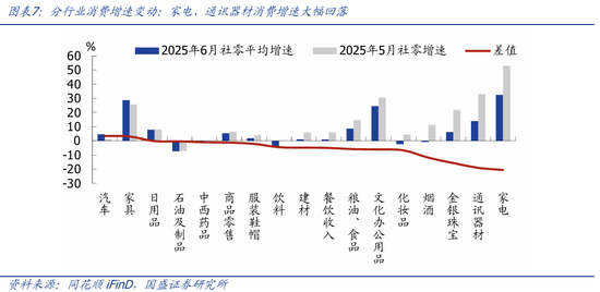 结构看,家电、通讯器材增速大幅回落,以旧换新政策效果减退,餐饮收入增速大降