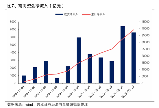 2025年初至 6 月 23 日,南向资金净流入额已超 6600 亿元,这一数字接近 2024 年全年的流入总量,更是远超 2024 年以前历年水平。根本的原因是港股市场生态环境发生改变,优质企业赴港上市,为港股市场注入新鲜血液,提升了市场活力,吸引了南向资金的流入。