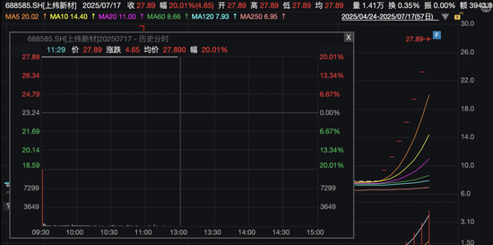 A股市场今天(7月17日)上午整体表现比较温和,上证指数在3500点上下波动,创业板指大涨超1%。个股依旧活跃,多股连续涨停板,其中上纬新材已连续7个交易日盘中“20cm”涨停,累计涨幅超过250%。
