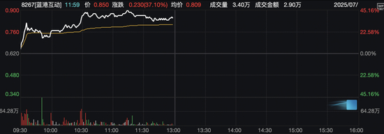 其他大幅波动的港股中,蓝港互动暴涨,盘中涨幅一度超过40%。