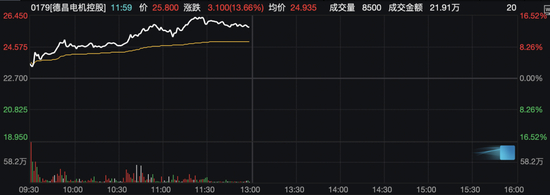 德昌电机控股也大幅上涨,盘中一度涨超16%。