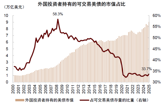 图表4:外国投资者持有可交易美债占存量降至34%