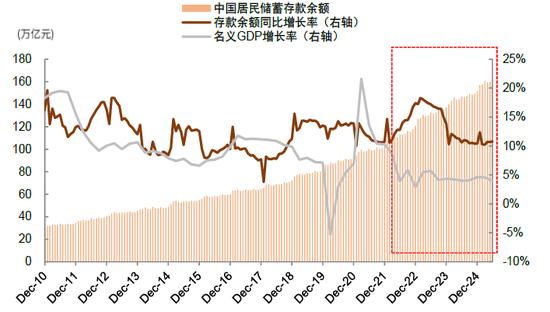 图表13:近3年居民存款增速高于名义GDP增速,储蓄余额突破162万亿元