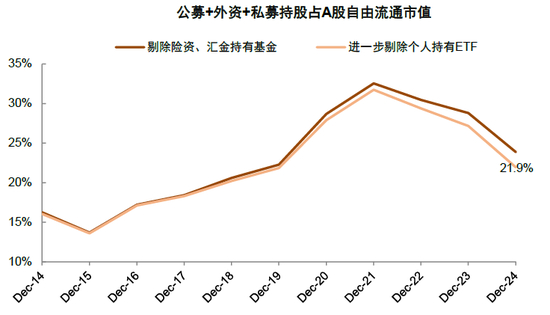 注:公募基金包含专户部分,但剔除保险持有基金部分,以及汇金持有股票ETF部分