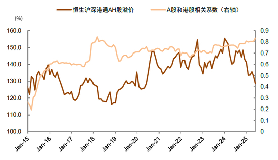 图表8:A股和港股的相关系数上升至历史高位,联动性较强