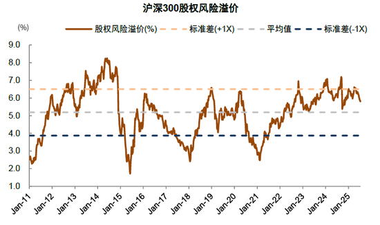图表15:沪深300股权风险溢价位于历史均值上方0.5倍标准差