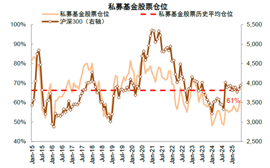 图表22:华润信托托管的私募基金股票仓位水平回升至61%,但仍明显低于历史均值