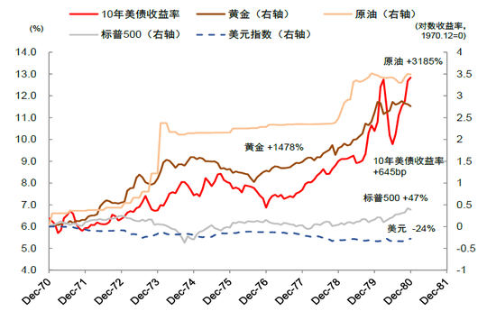 图表5:1970年代布雷顿森林体系解体后,美债利率上行,“锚”作用下降,全球资产波动增大