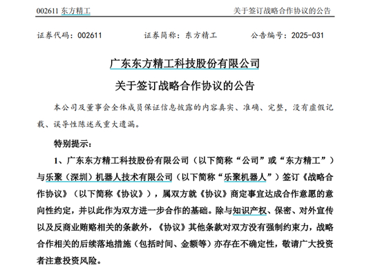 东方精工与乐聚机器人开展战略合作