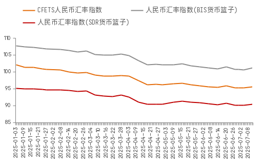 7月份以来,由于美元指数止跌回升,离岸、在岸人民币出现边际走贬。7月4日,CFETS人民币汇率指数跌至95.3,创2020年12月以来新低,较去年末贬值6.1%。