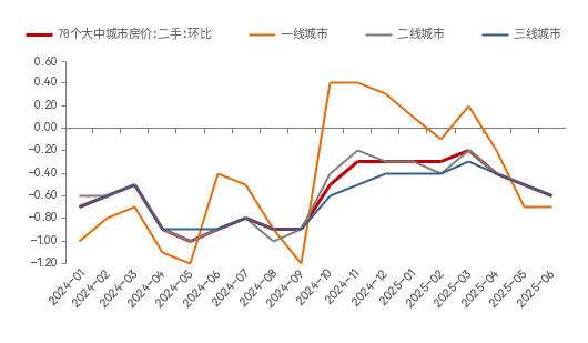 四是在人口老龄化加速、城镇化进程放缓的背景下,房地产受长周期下行的压制,乍暖还寒。二季度房地产出现边际转弱迹象。上半年,新建商品房销售面积和销售额同比分别下降3.5%和5.5%,比去年四季度和今年一季度的“止跌回稳”势头有所减弱。房地产销售价格重回下行区间,特别是二季度以来一线城市二手房销售价格再度出现环比下降。